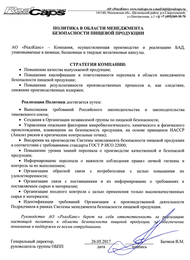 Система менеджмента безопасности пищевой продукции (далее СМБПП) внедряется с 2014. Первым документом, разработанным по СМБПП, стала политика в области менеджмента безопасности пищевой продукции, представленной на сайте. Большинство мероприятий по внедрению требований международного стандарта ISO 22000 было проведено в 2015 году. Работы по поддержанию в рабочем состоянии и актуализации СМБПП проводятся в постоянном режиме и направлены на выпуск безопасной продукции. Ведение требуемых записей, а также соблюдение персоналом требований личной гигиены, производственной санитарии – это малая толика проводимых мероприятий. Достаточно большое внимание уделяется содержанию в нашей продукции аллергенсодержащего сырья. В соответствии с требованиями ТР ТС 021/2011, к данной категории относятся: рыбий жир, соевый лецитин, лактоза. Собственная производственная лаборатория контролирует жирнокислотный состав входящего сырья и выпускаемой продукции.