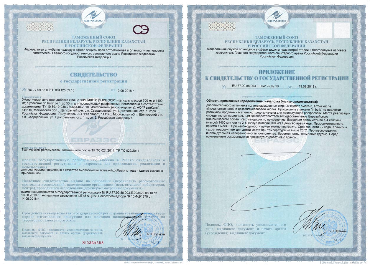 «ЛИПИЛОК®» зарегистрирован Федеральной службой по надзору в сфере защиты прав потребителей и благополучия человека. Свидетельство о государственной регистрации RU.77.99.88.003.Е.004125.09.18 от 19.09.2018г. ТУ 10.89.19-038-78056148-2018.